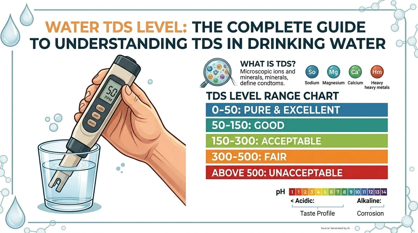 If you have ever picked up a TDS meter, checked a water quality report, or wondered why some water tastes flat and some tastes almost salty, TDS is the answer. Total Dissolved Solids is one of the most important and most misunderstood measures of drinking water quality. This guide explains everything: what TDS means, what the ideal TDS of drinking water actually is, how to measure it at home, and what to do if your water TDS level is too high or too low.